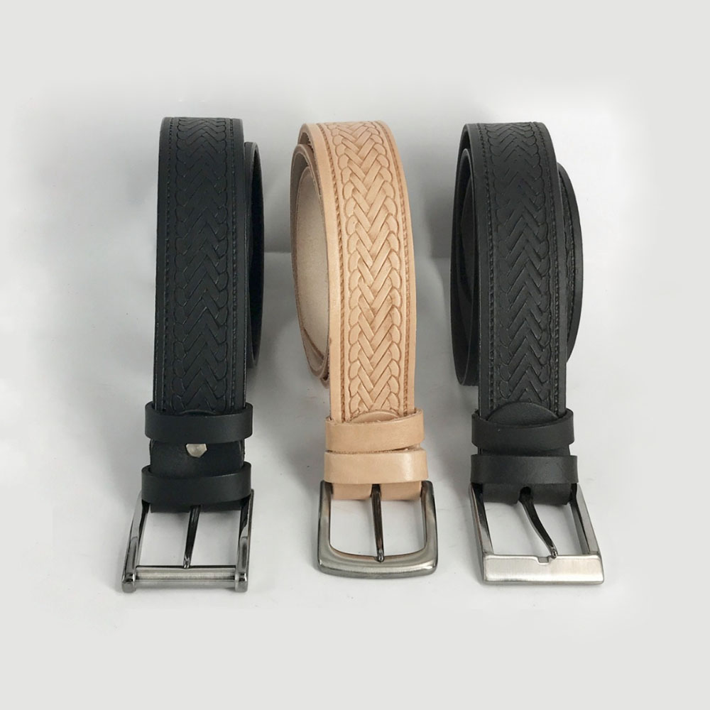 Δερμάτινη ζώνη ελληνικής παραγωγής με πυρογραφία πλεξούδα.
